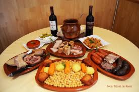 La cocina típica madrileña es sencilla y abarca una serie de platos que proceden de la tradición más o menos rural de Castilla: asados, de cordero, cabrito o lechón; productos derivados del cerdo, guisos de “cuchara”, judías, lentejas,  cocido madrileño de garbanzos, probablemente el más popular de la cocina típicamente madrileña junto con los “callos a la madrileña” .